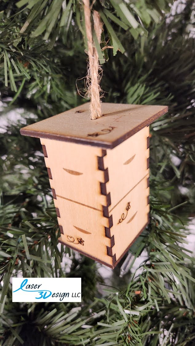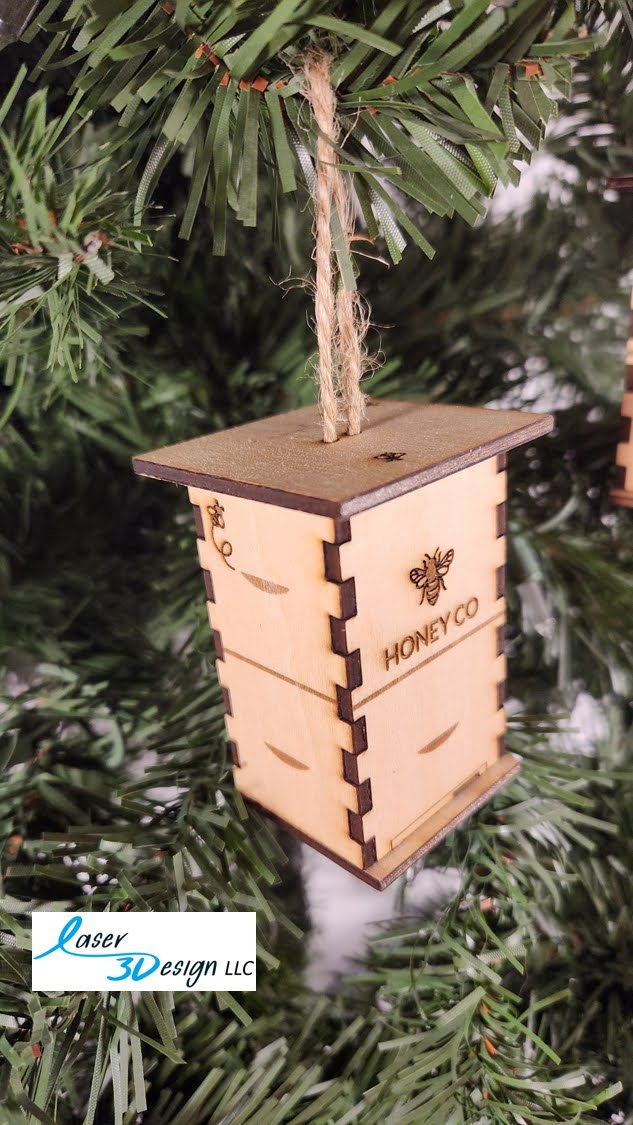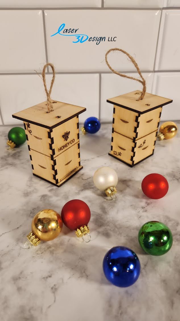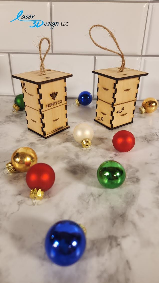 Each Personalized 3D Beehive Ornament is laser cut with clean lines and simple details. The tiny bees engraved on the sides add a fun and playful look. A rustic twine loop lets you hang the ornament easily and keeps the top neat. The ornament does not open, but it still looks like a real mini hive.