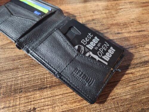 The black matte finish isn’t just about aesthetics; it ensures durability and longevity, even with regular use. This opener is made from high-quality metal material, ensuring it stands the test of time. Lightweight yet sturdy, it slides easily into your wallet without adding bulk. Carry it confidently wherever you go, knowing you’ve got a reliable and sleek tool to crack open any bottle in style.