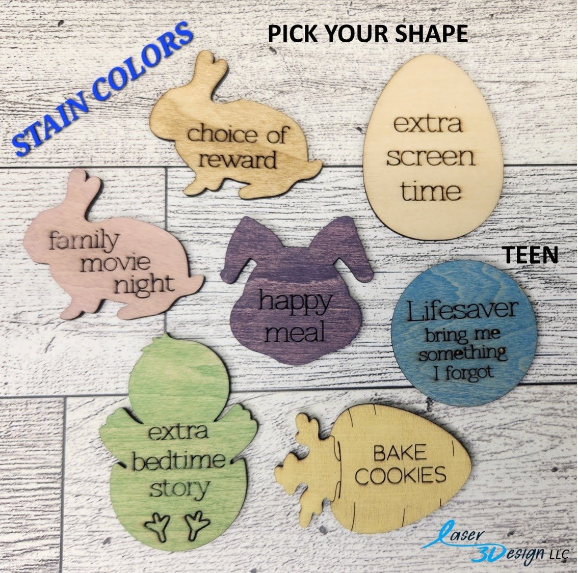 These tokens feature durable wood construction with precision laser engraving. Unlike candy, they survive year after year without ending up in the trash. Choose from eight vibrant stain colors — red, pink, orange, yellow, blue, green, light brown, and dark brown. Furthermore, each token fits perfectly inside standard plastic Easter eggs, making setup quick and easy.